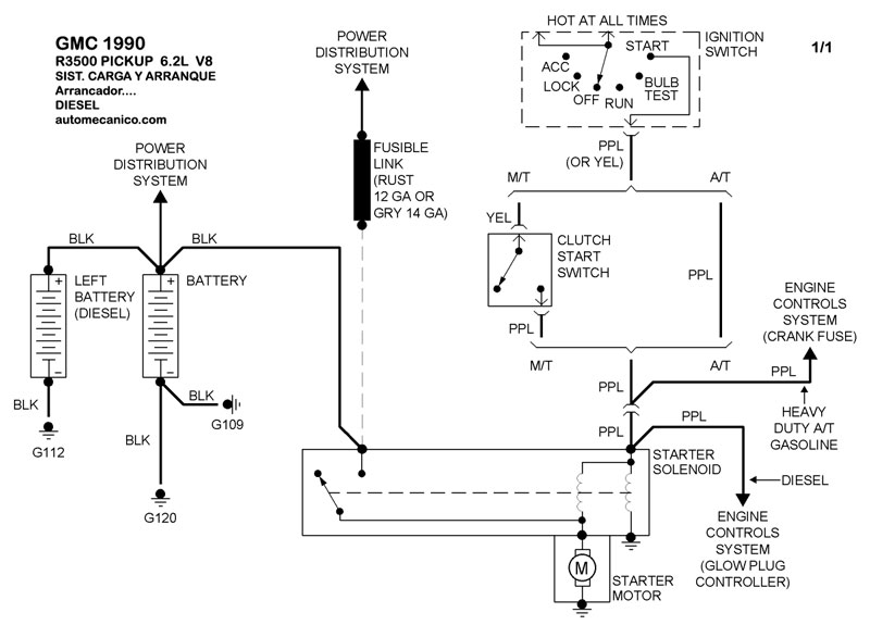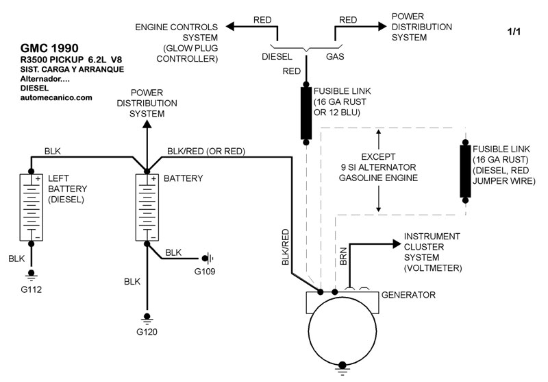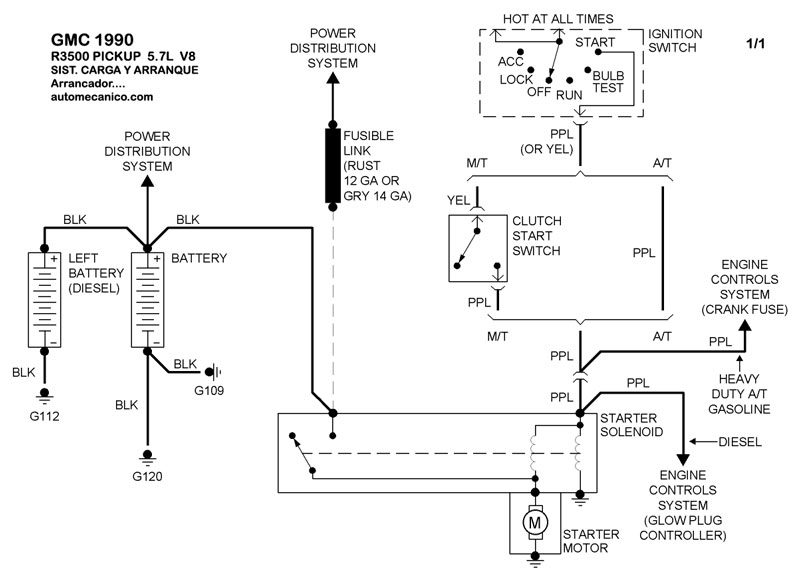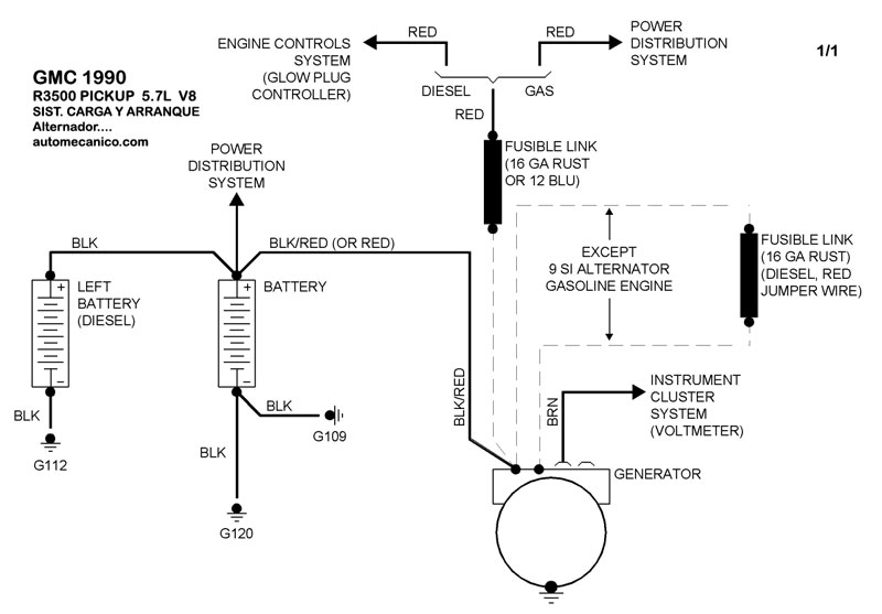 | Los Diagramas, listados abajo, se refieren unicamente al Circuito electrico que involucra: Alternador [Generador] y/o; Arrancador [Motor de arranque, Marcha, Starter] - INDICE: GMC - 1990 - |