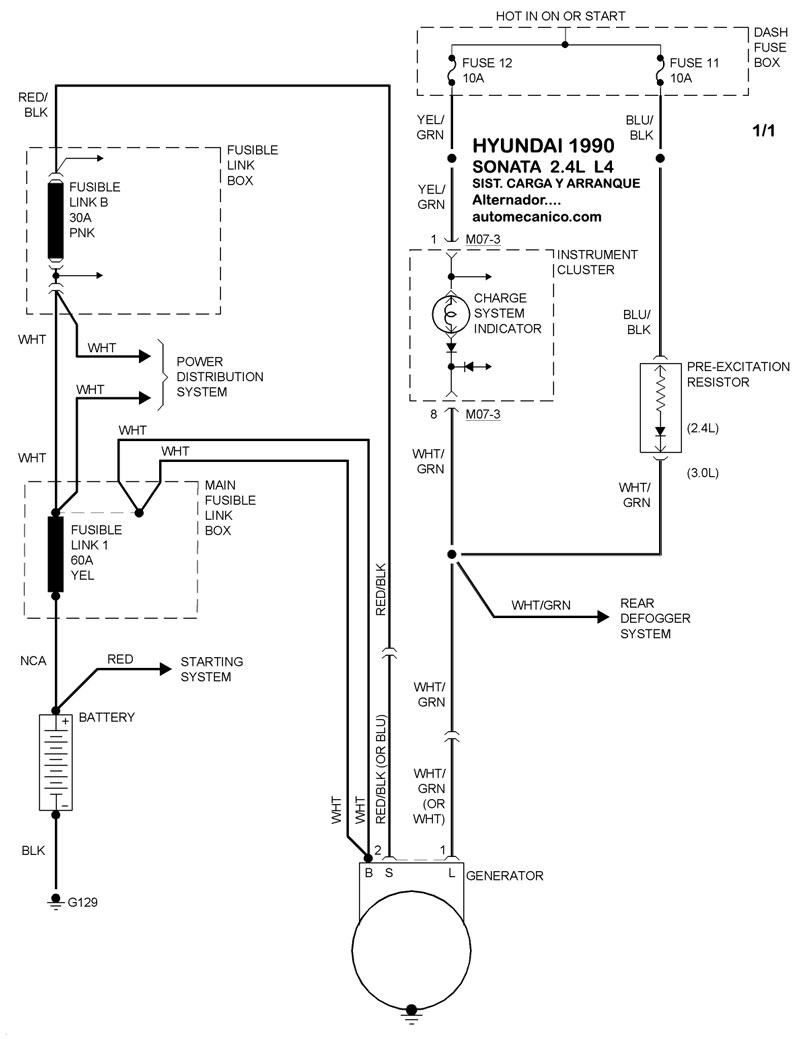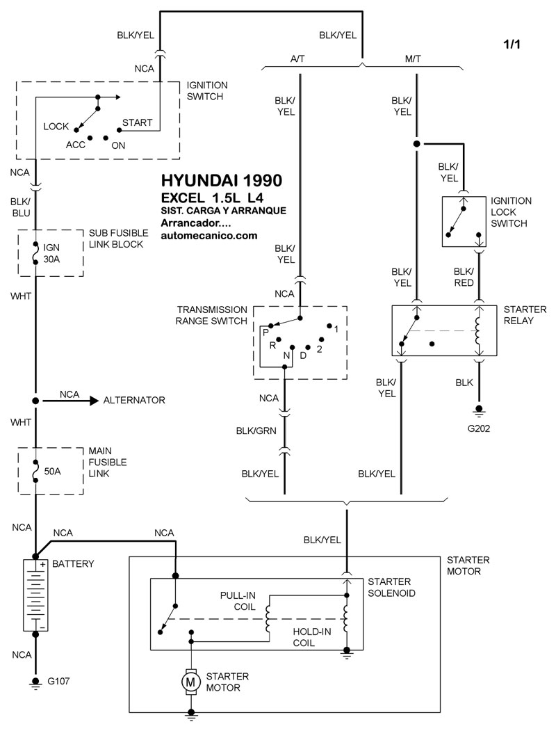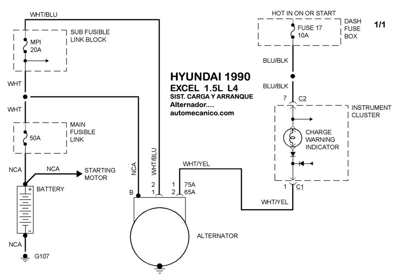 Diagramas HYUNDAI : Carga y Arranque | Charging and Starting System: - Esquemas - Graphics 1990 - |