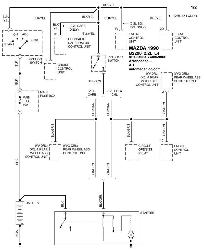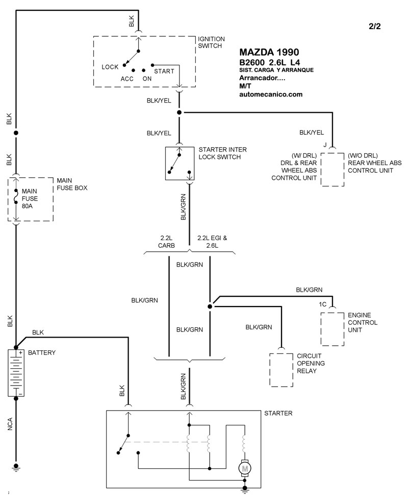 | 1990 | B2600 - 2.6L L4 CIL. | 00-00 | SIST. DE ARRANQUE T/M |
