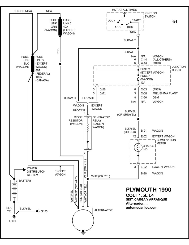 | Los Diagramas, listados abajo, se refieren unicamente al Circuito electrico que involucra: Alternador [Generador] y/o; Arrancador [Motor de arranque, Marcha, Starter] - INDICE: PLYMOUTH - 1990 - |