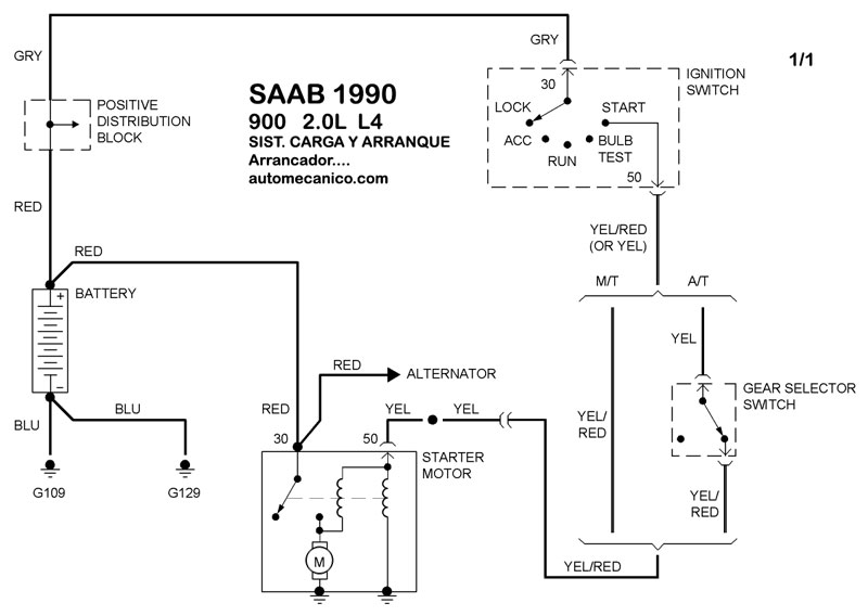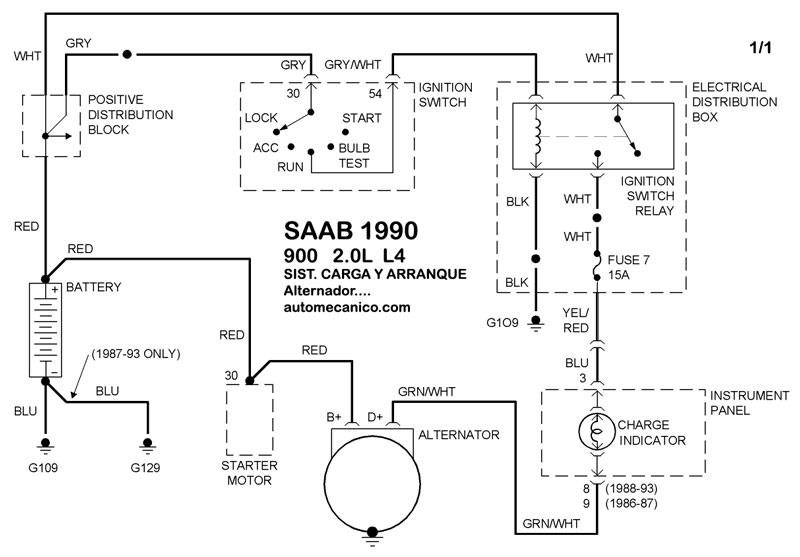 Diagramas SAAB : Carga y Arranque | Charging and Starting System: - Esquemas - Graphics 1990 - |