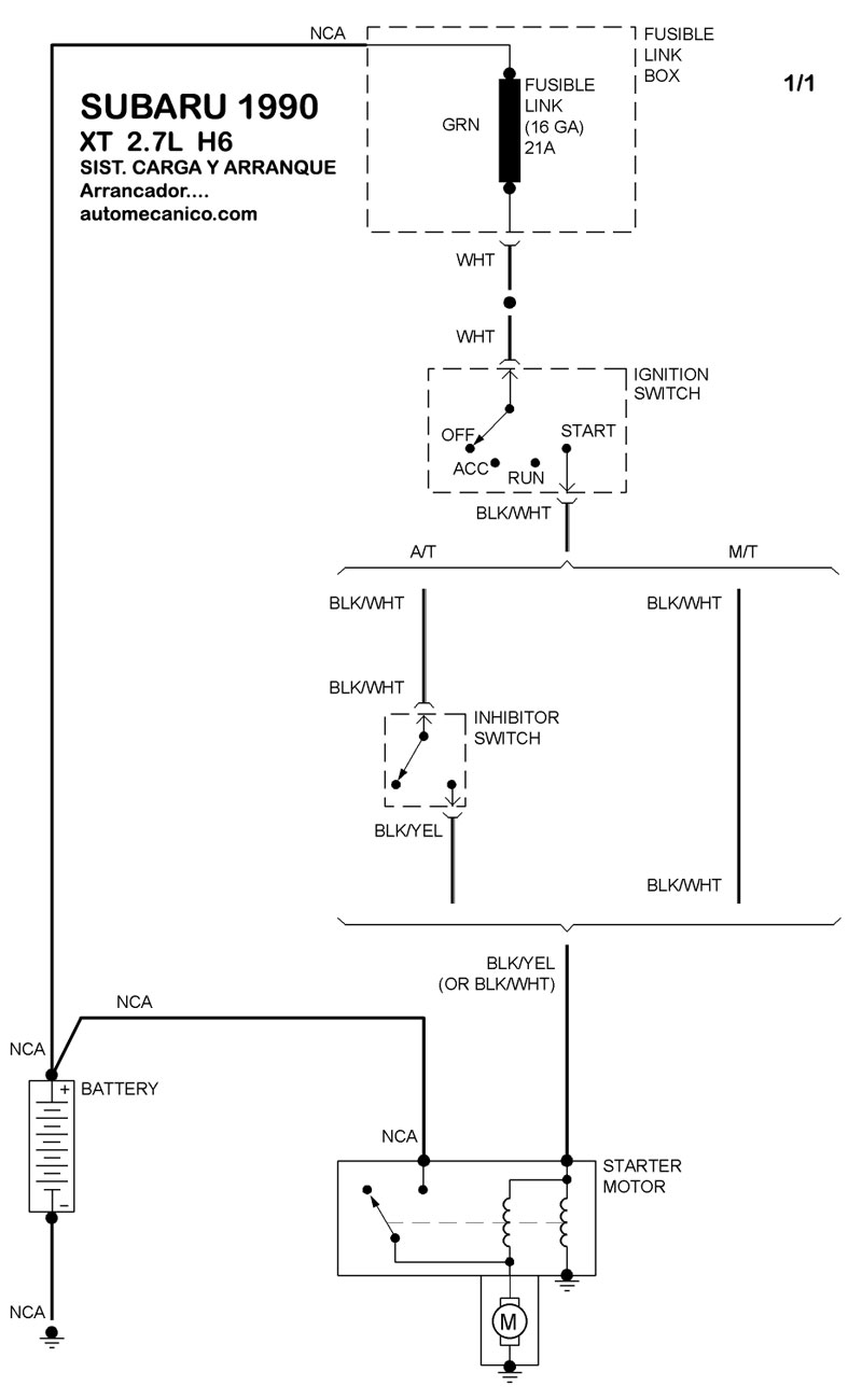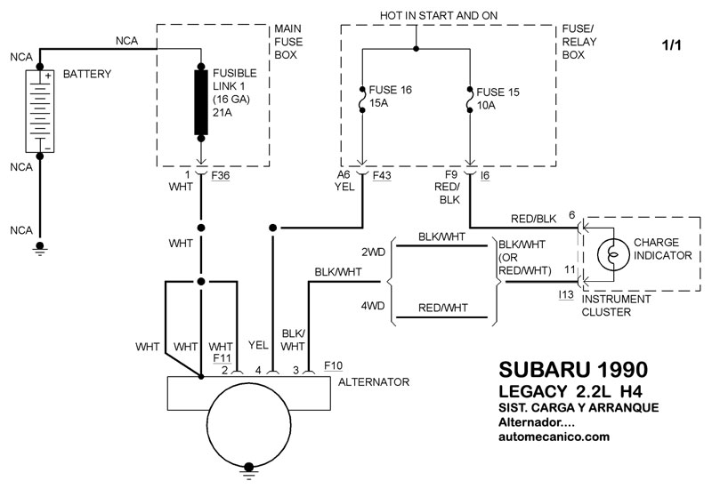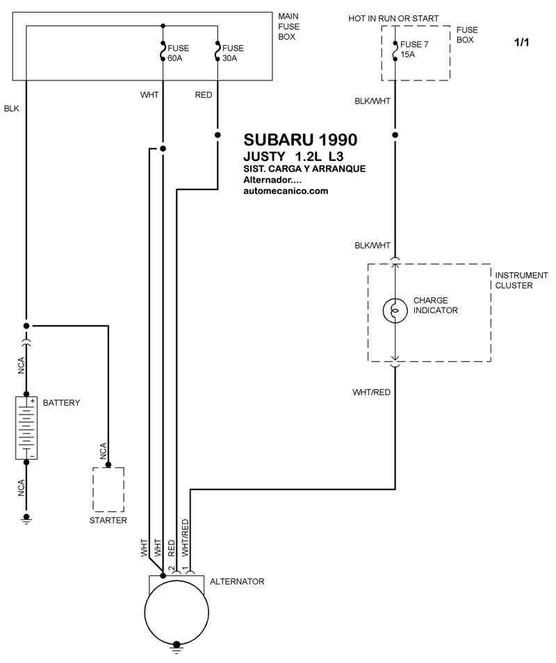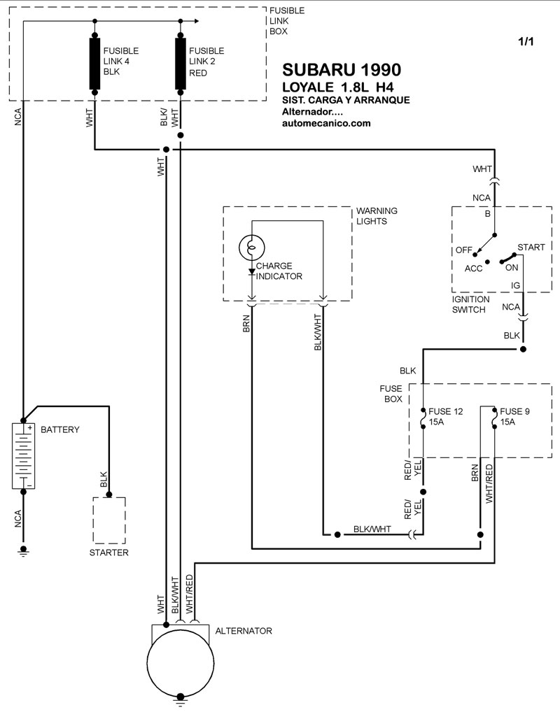 Diagramas SUBARU : Carga y Arranque | Charging and Starting System: - Esquemas - Graphics 1990 - |