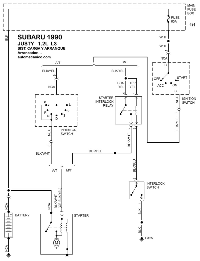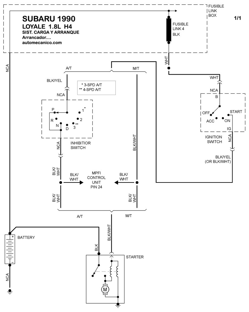 | Los Diagramas, listados abajo, se refieren unicamente al Circuito electrico que involucra: Alternador [Generador] y/o; Arrancador [Motor de arranque, Marcha, Starter] - INDICE: SUBARU - 1990 - |