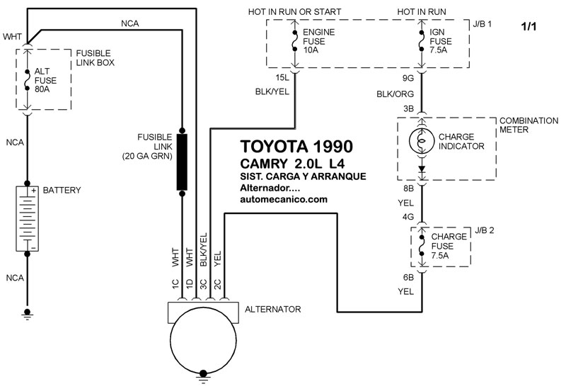 Diagramas TOYOTA : Carga y Arranque | Charging and Starting System: - Esquemas - Graphics 1990 - |