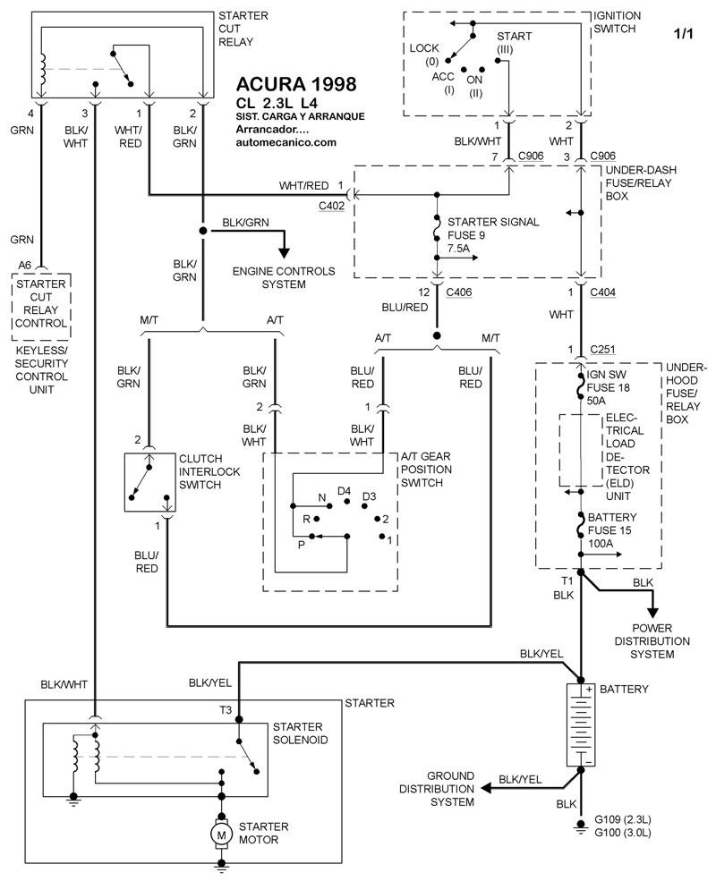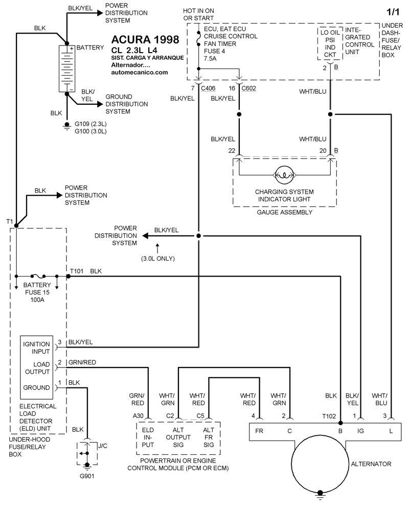 | 1998 | CL - 3.0L V6 CIL. | SIST. DE CARGA | SIST. DE ARRANQUE |