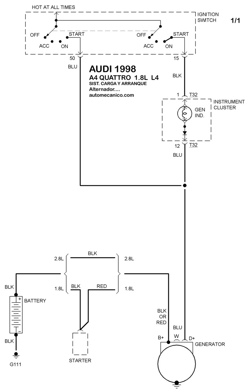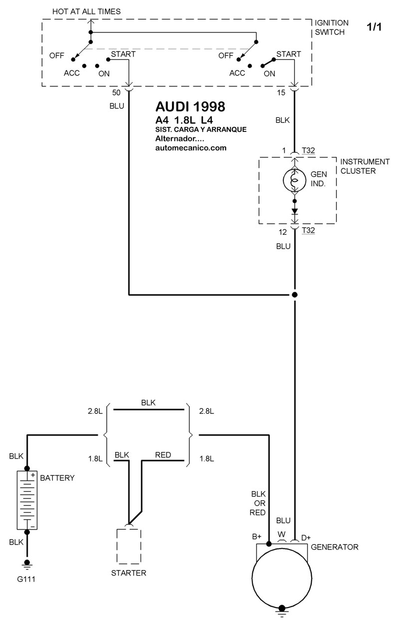 | 1998 | A4 - 2.8L V6 CIL. | SIST. DE CARGA | SIST. DE ARRANQUE |