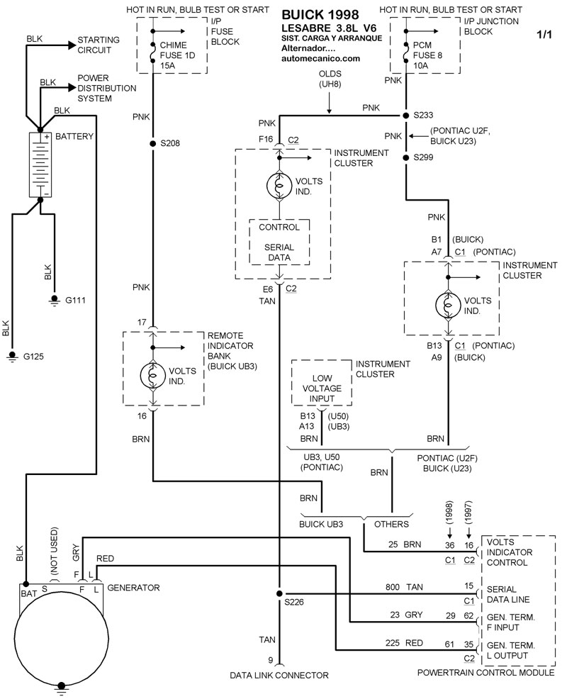 Diagramas BUICK : Carga y Arranque | Charging and Starting System: - Esquemas - Graphics 1998 - |