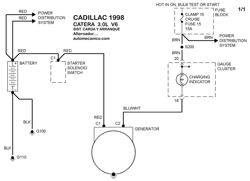 Diagramas CADILLAC : Carga y Arranque | Charging and Starting System: - Esquemas - Graphics 1998 - |