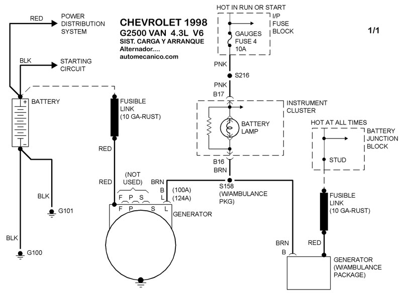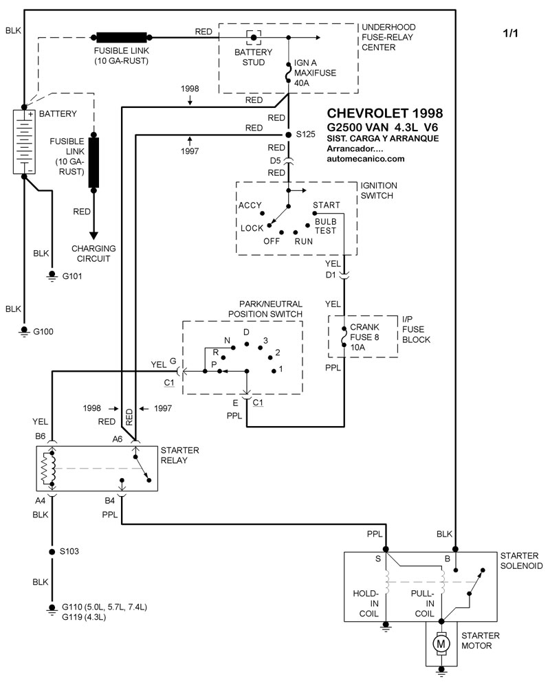 | 1998 | G2500 VAN - 4.3L V6 | SIST. DE CARGA | SIST. DE ARRANQUE |