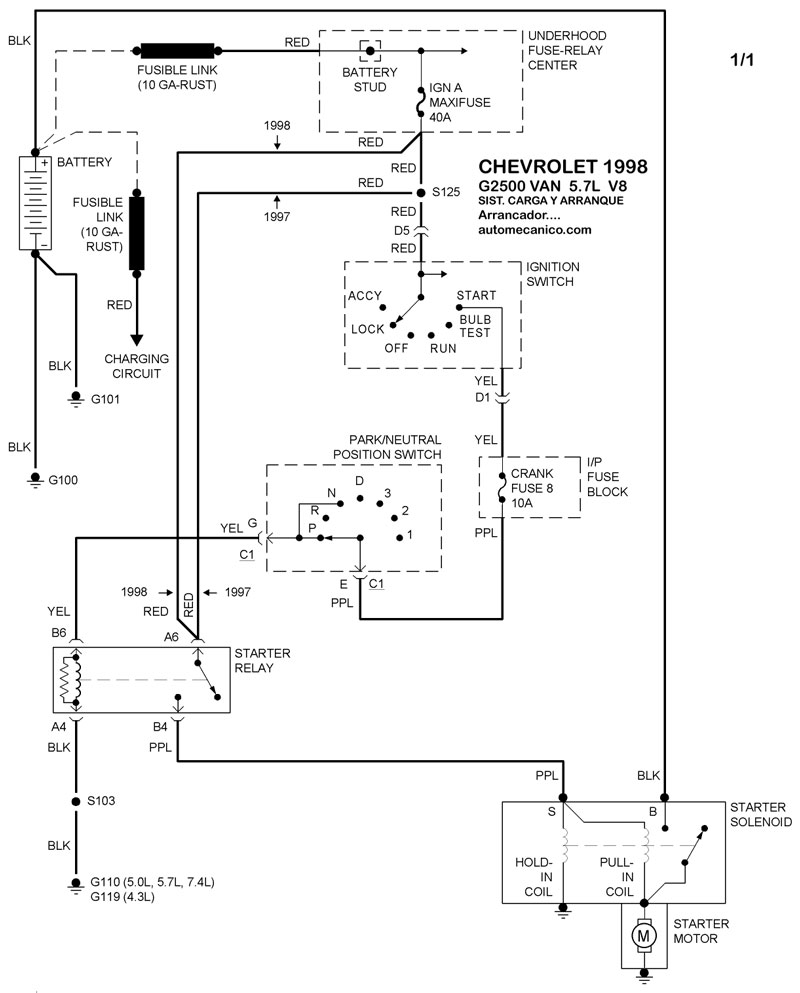 | 1998 | G3500 VAN - 5.7L V8 | SIST. DE CARGA | SIST. DE ARRANQUE |