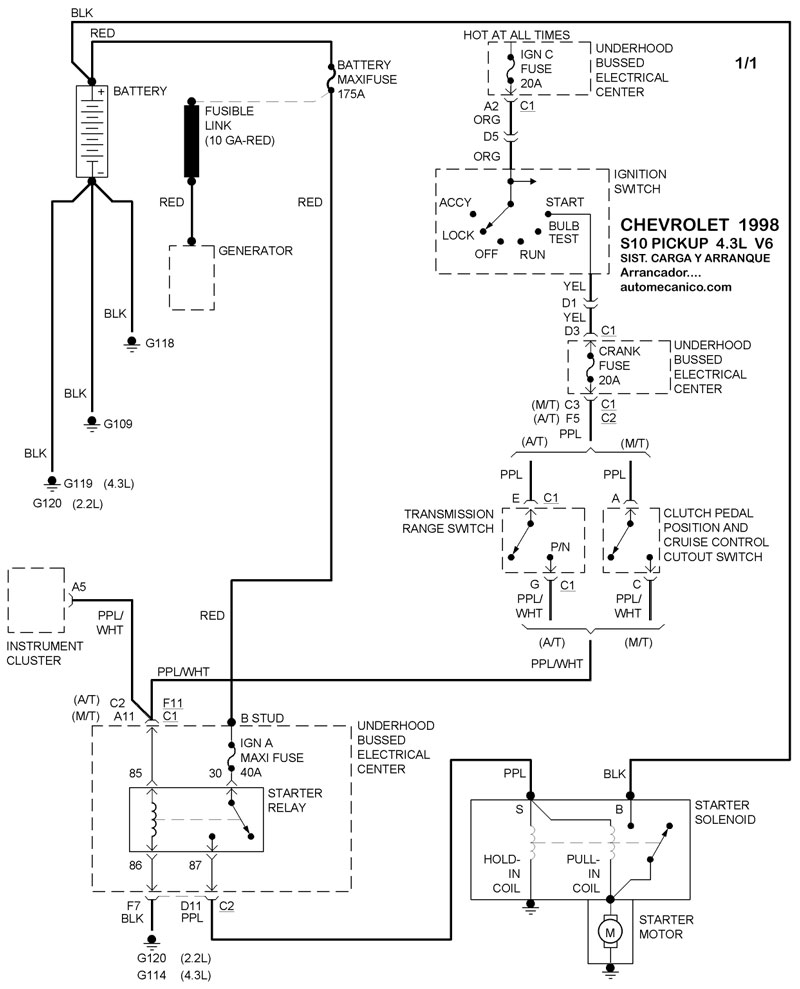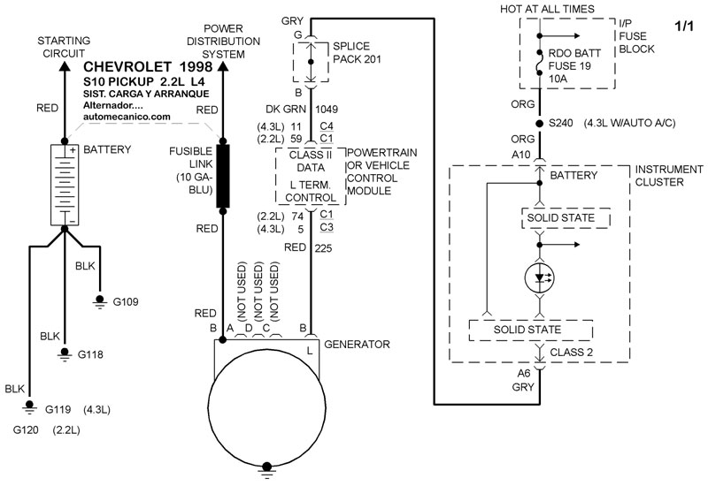 | 1998 | S10 PICKUP - 4.3L V6 | SIST. DE CARGA | SIST. DE ARRANQUE |