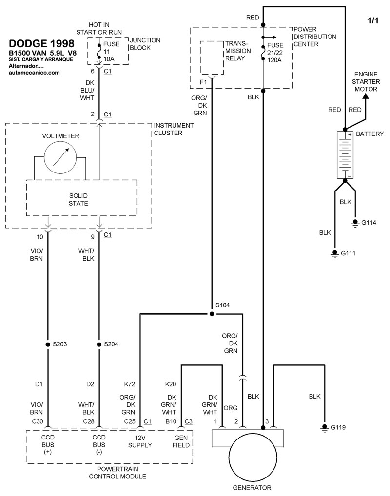 | 1998 | B1500 VAN - 5.9L V8 CIL. | SIST. DE CARGA | SIST. DE ARRANQUE |