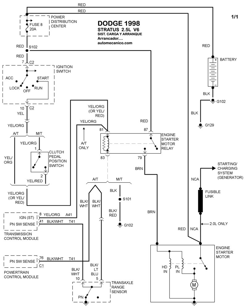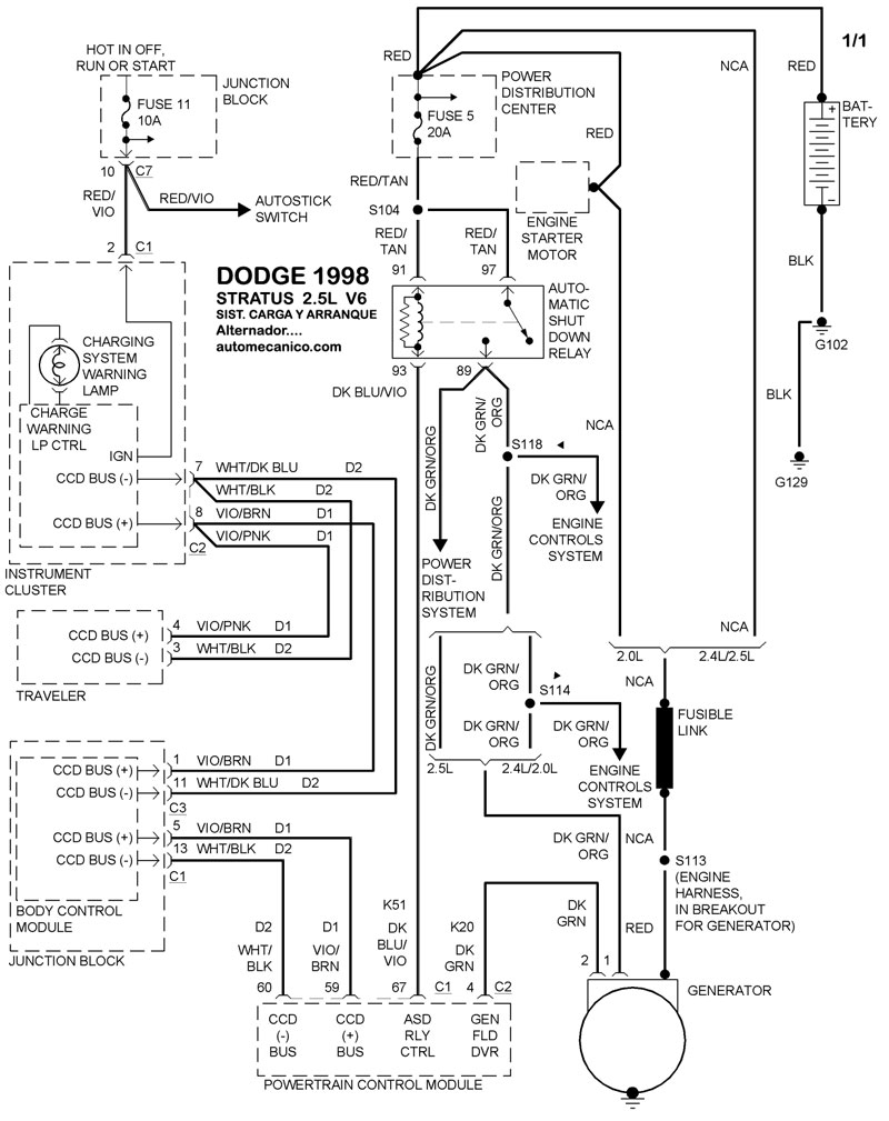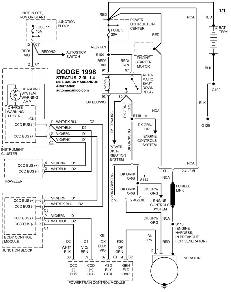 | Los Diagramas, listados abajo, se refieren unicamente al Circuito electrico que involucra: Alternador [Generador] y/o; Arrancador [Motor de arranque, Marcha, Starter] - INDICE: DODGE - 1998 - |