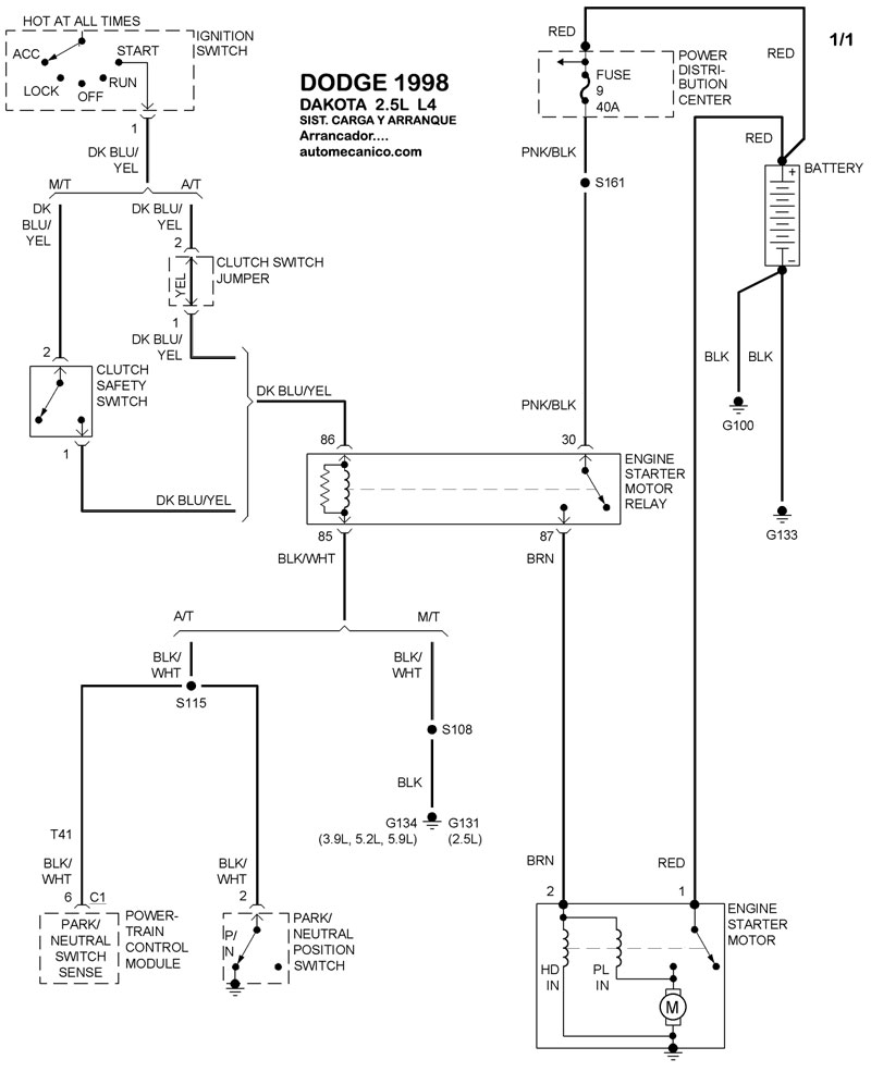 | 1998 | DAKOTA - 5.9L V8 CIL. | SIST. DE CARGA | SIST. DE ARRANQUE |