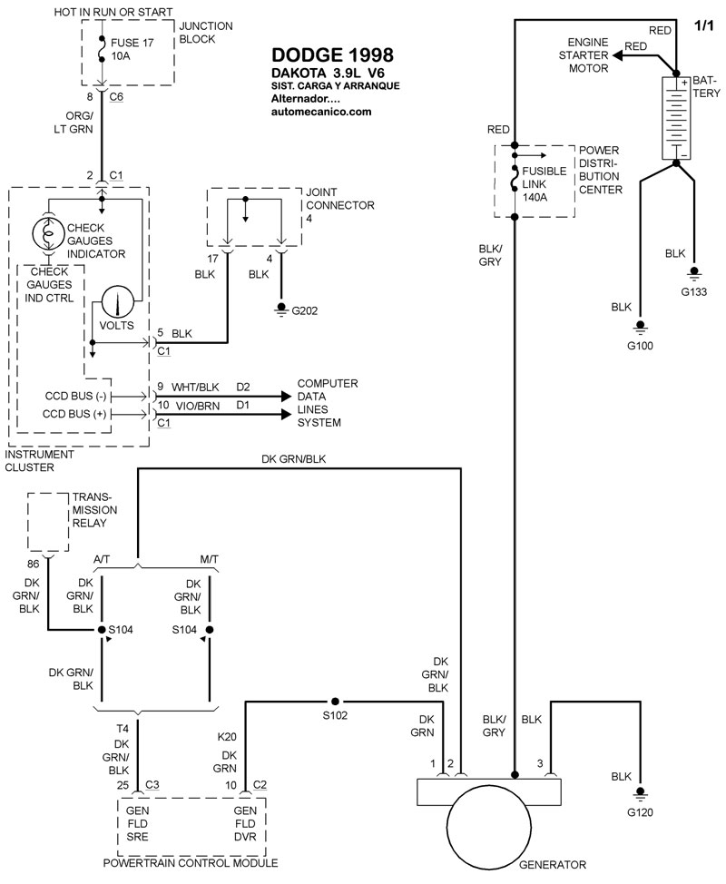| 1998 | DAKOTA - 3.9L V6 CIL. | SIST. DE CARGA | SIST. DE ARRANQUE |