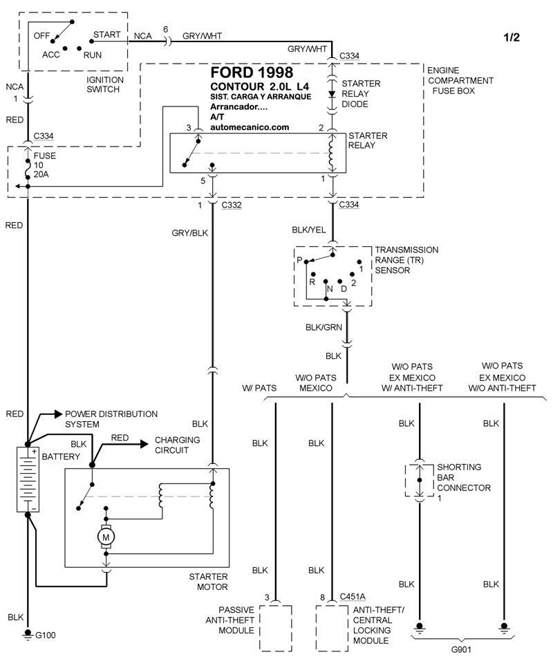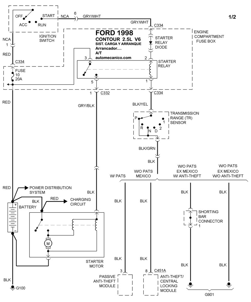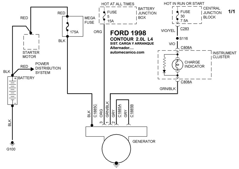| 1998 | CONTOUR - 2.5L V6 | SIST. DE CARGA | SIST. DE ARRANQUE T/A |