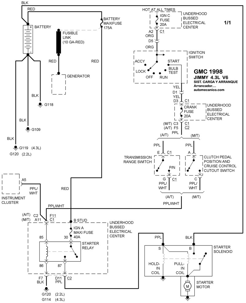 | 1998 | JIMMY - 4.3L V6 | SIST. DE CARGA | SIST. DE ARRANQUE |