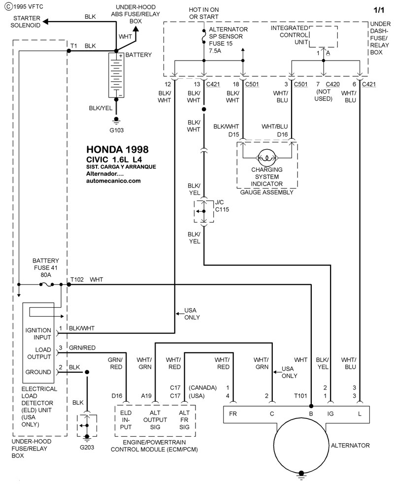 | 1998 | CIVIC - 1.6L 4 CIL. | SIST. DE CARGA | SIST. DE ARRANQUE T/A |
