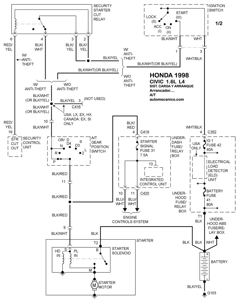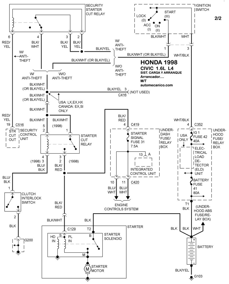 | 1998 | CIVIC - 1.6L 4 CIL. | 00-00 | SIST. DE ARRANQUE T/M |
