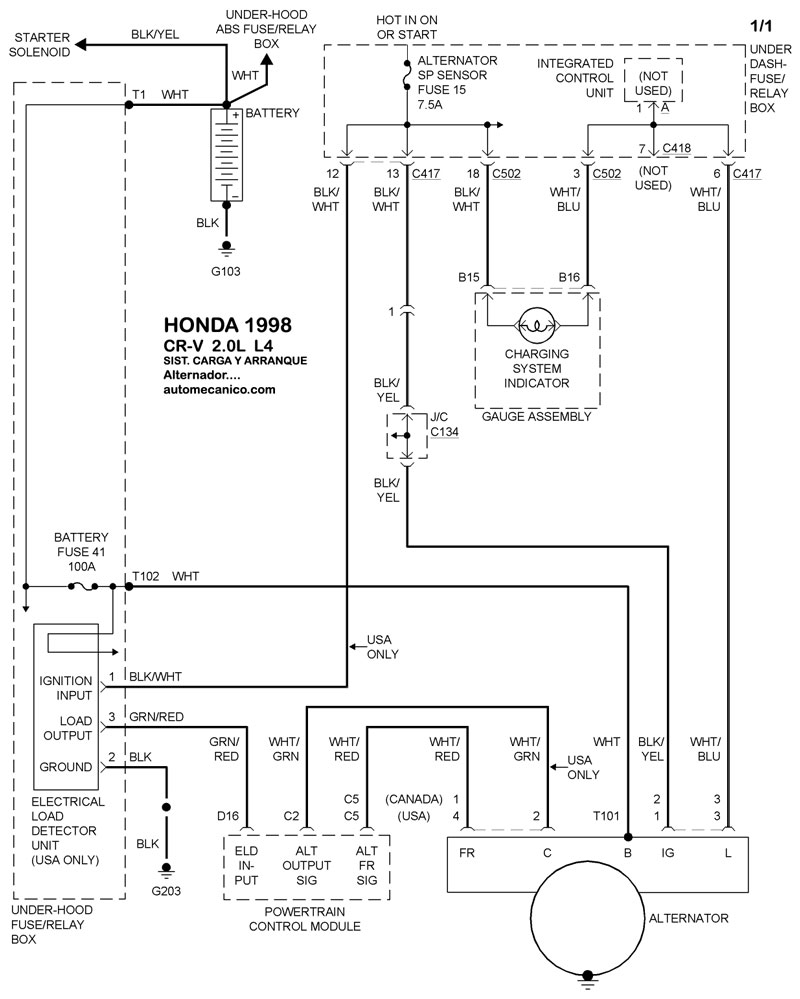 | 1998 | CR-V - 2.0L 4 CIL | SIST. DE CARGA | SIST. DE ARRANQUE |