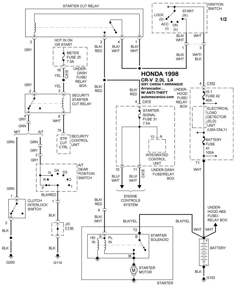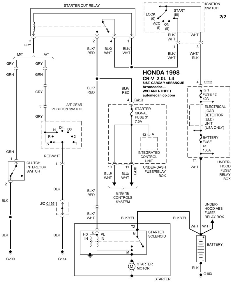 | 1998 | CR-V - 2.0L 4 CIL. | Sin Antitheft | SIST. DE ARRANQUE |