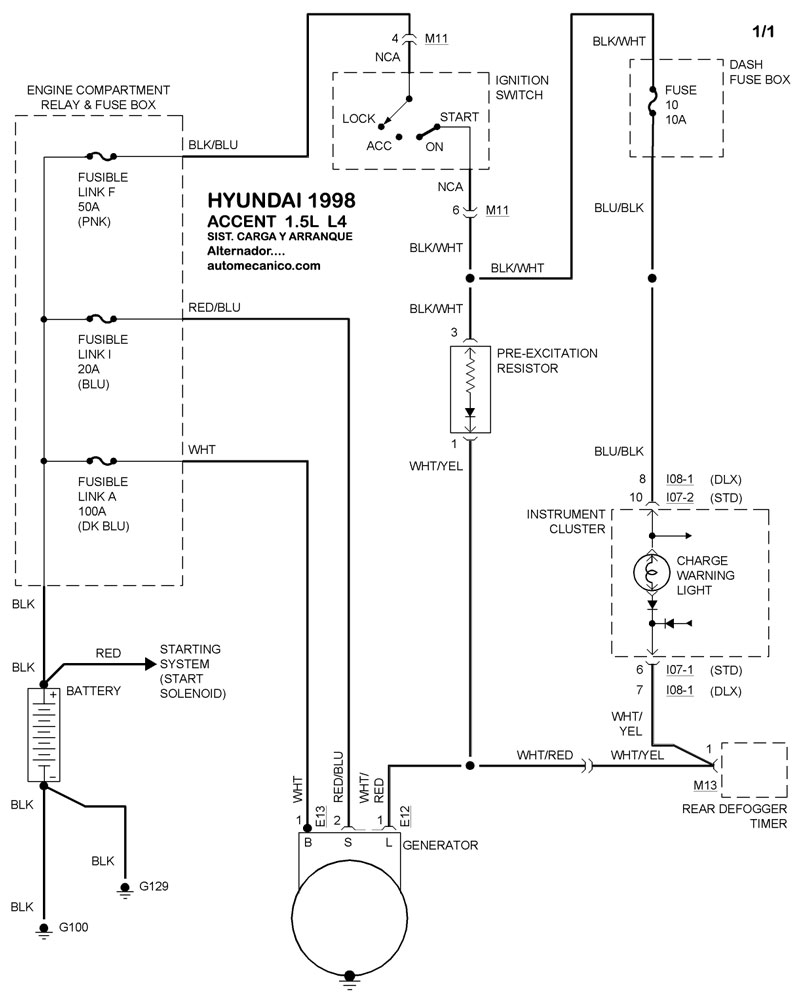 Diagramas HYUNDAI : Carga y Arranque | Charging and Starting System: - Esquemas - Graphics 1998 - |