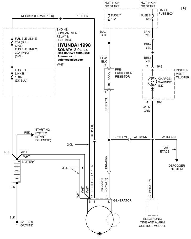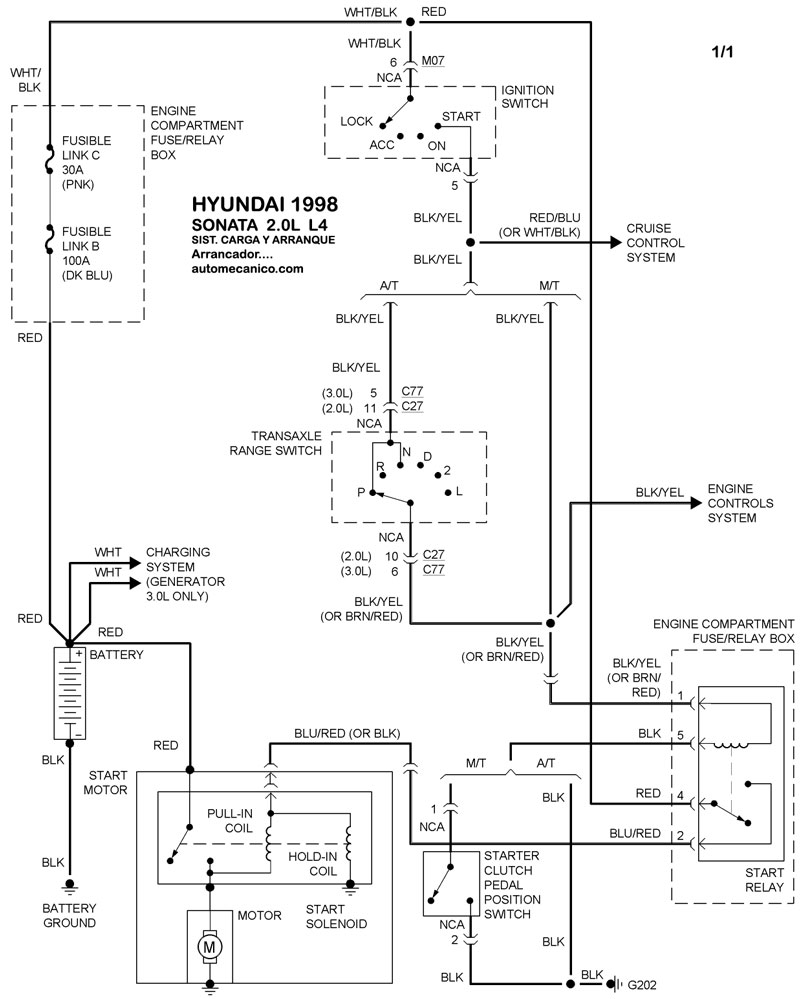 | 1998 | SONATA - 2.0L 4 CIL | SIST. DE CARGA | SIST. DE ARRANQUE |