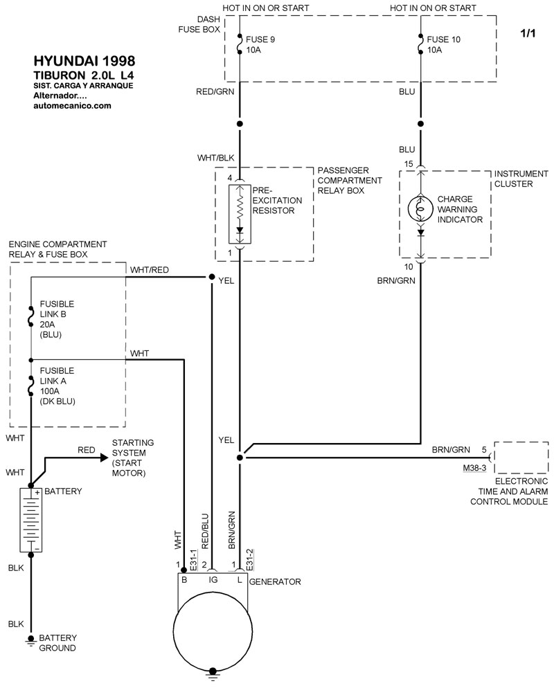 | 1998 | TIBURON - 2.0L 4 CIL | SIST. DE CARGA | SIST. DE ARRANQUE |