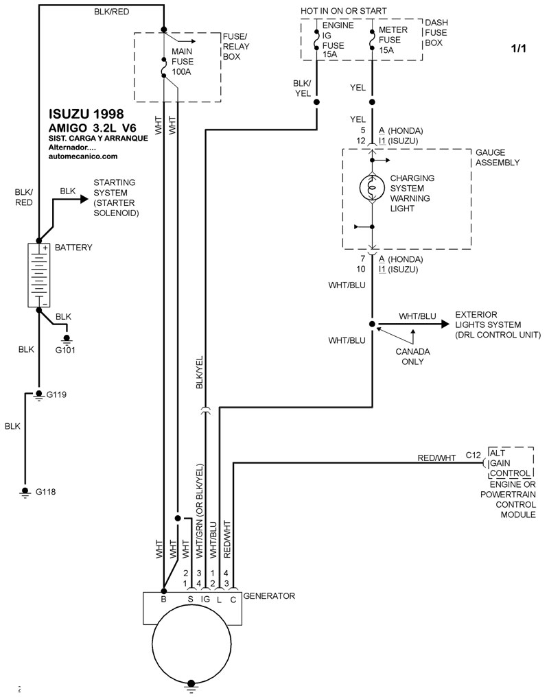 | 1998 | AMIGO - 3.2L V6 CIL. | SIST. DE CARGA | SIST. DE ARRANQUE |
