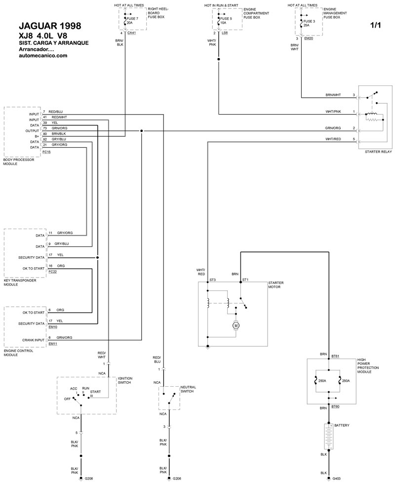 | 1998 | XJ8 - 4.0L V8 CIL. | SIST. DE CARGA | SIST. DE ARRANQUE |