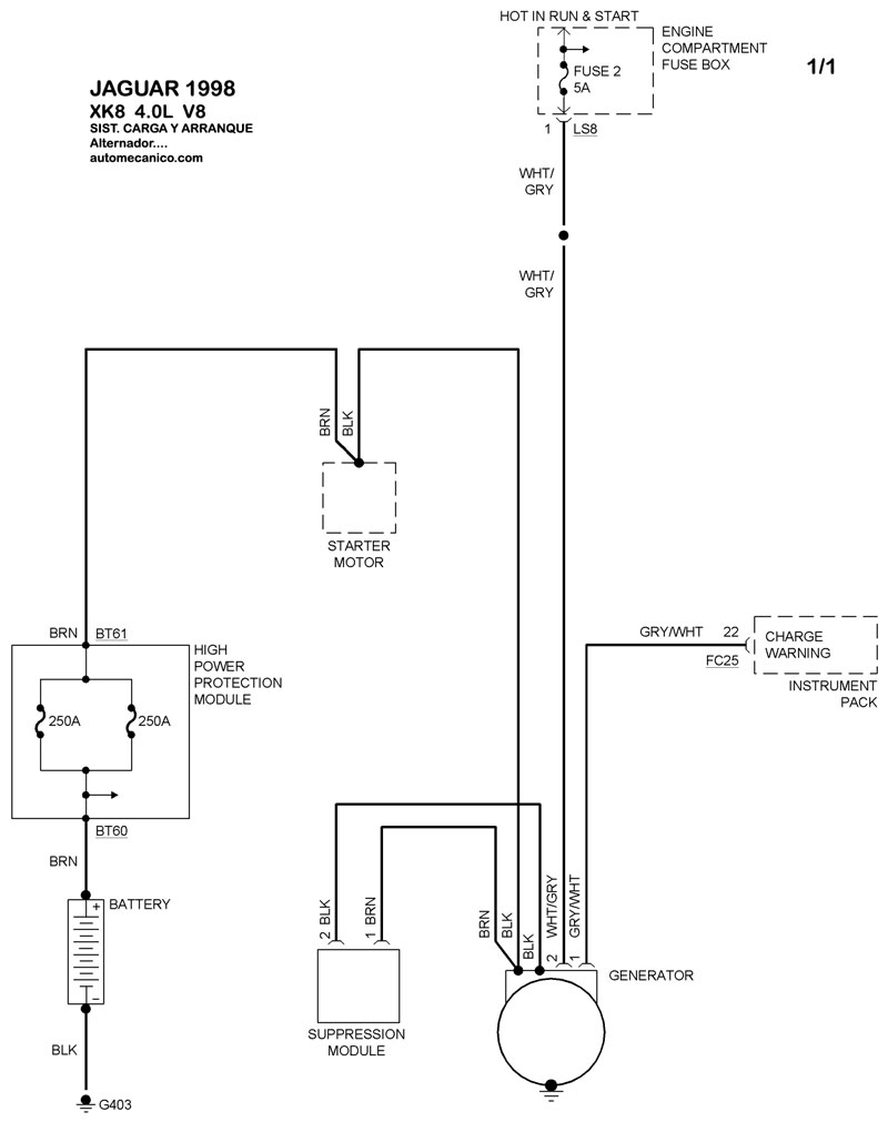Diagramas JAGUAR : Carga y Arranque | Charging and Starting System: - Esquemas - Graphics 1998 - |