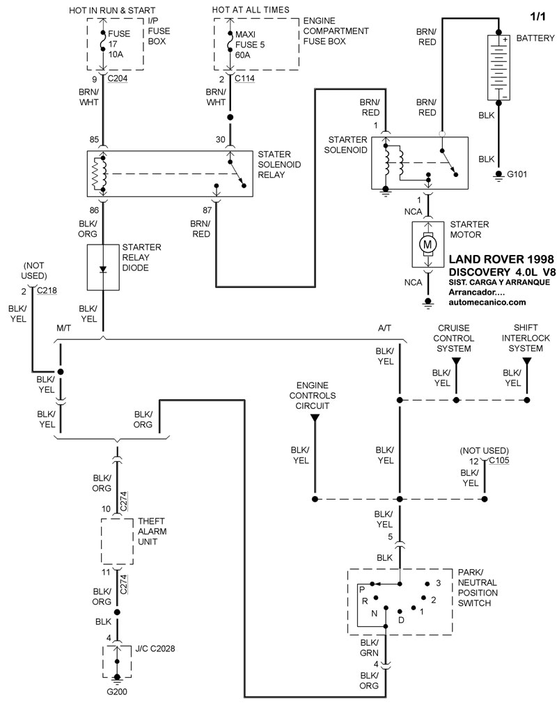 | 1998 | DISCOVERY - 4.0L V8 CIL. | SIST. DE CARGA | SIST. DE ARRANQUE |