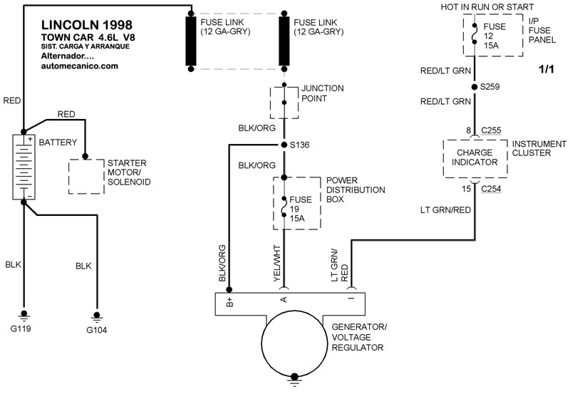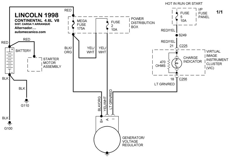 Diagramas LINCOLN : Carga y Arranque | Charging and Starting System: - Esquemas - Graphics 1998 - |