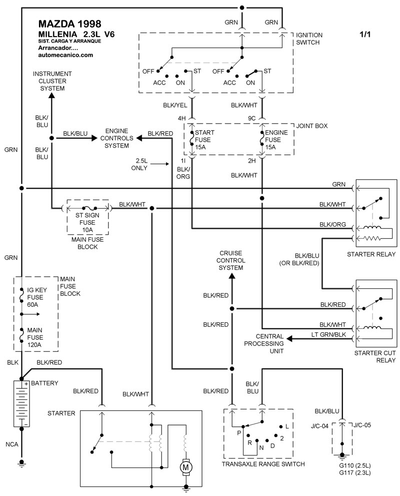 | 1998 | MILLENIA - 2.5L V6 CIL. | SIST. DE CARGA | SIST. DE ARRANQUE |