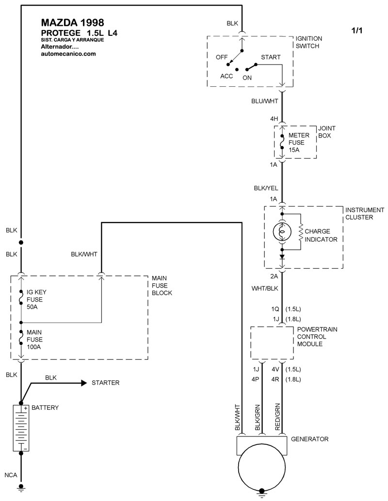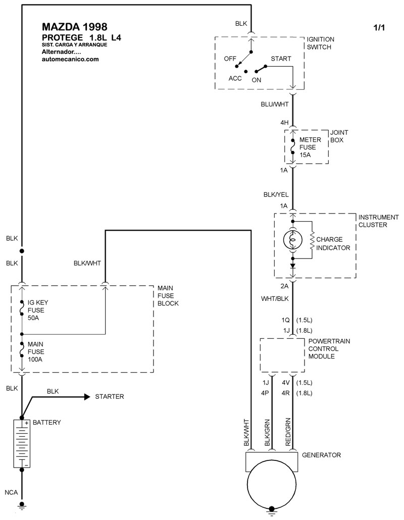 Diagramas MAZDA : Carga y Arranque | Charging and Starting System: - Esquemas - Graphics 1998 - |