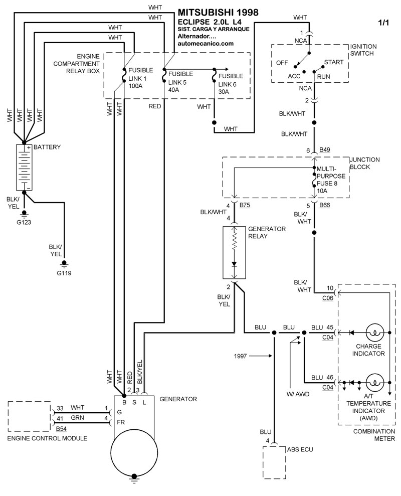 Diagramas MITSUBISHI : Carga y Arranque | Charging and Starting System: - Esquemas - Graphics 1998 - |