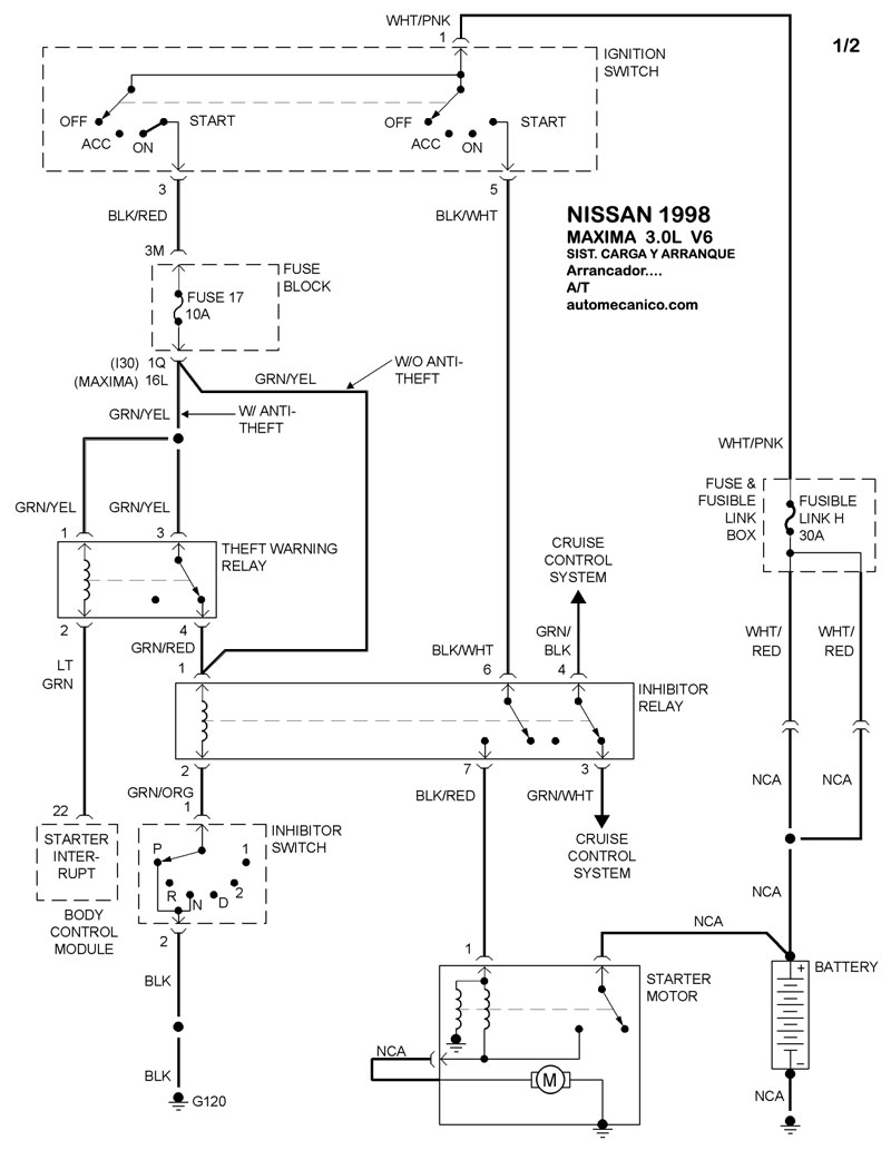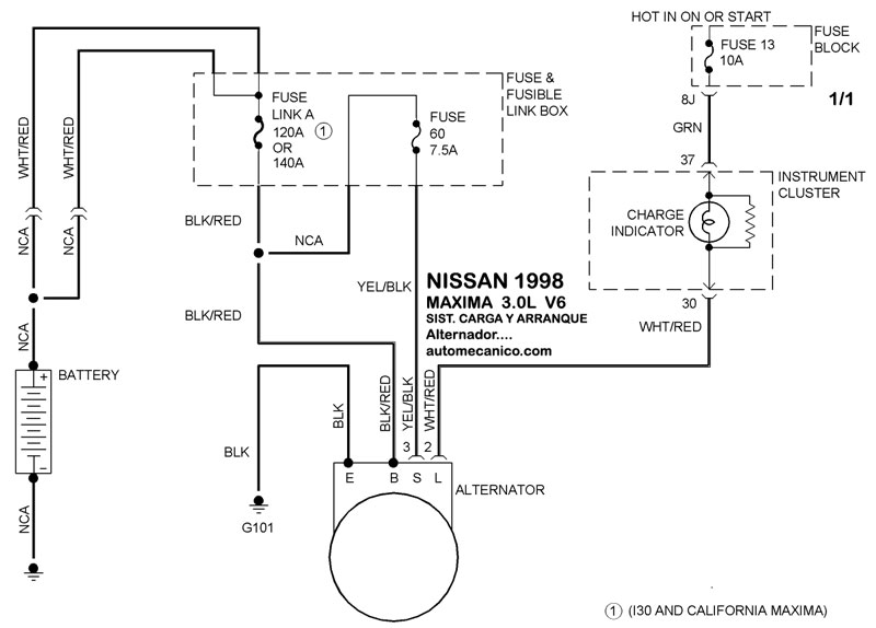 | 1998 | MAXIMA - 3.0L V6 CIL. | SIST. DE CARGA | SIST. DE ARRANQUE T/A |