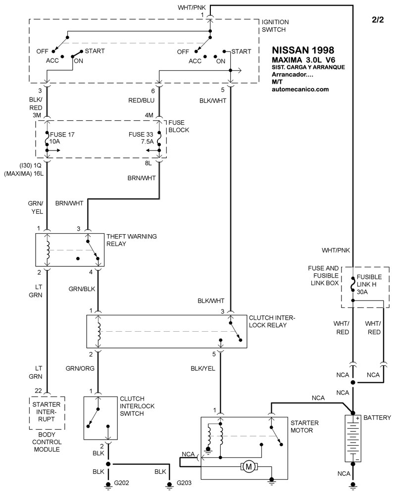 | 1998 | MAXIMA - 3.0L V6 CIL. | 00-00 | SIST. DE ARRANQUE T/M |
