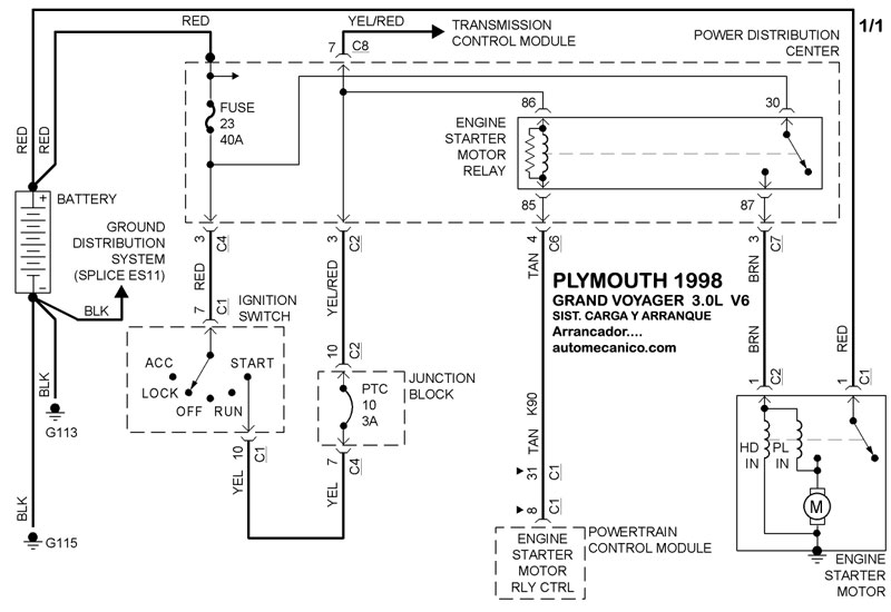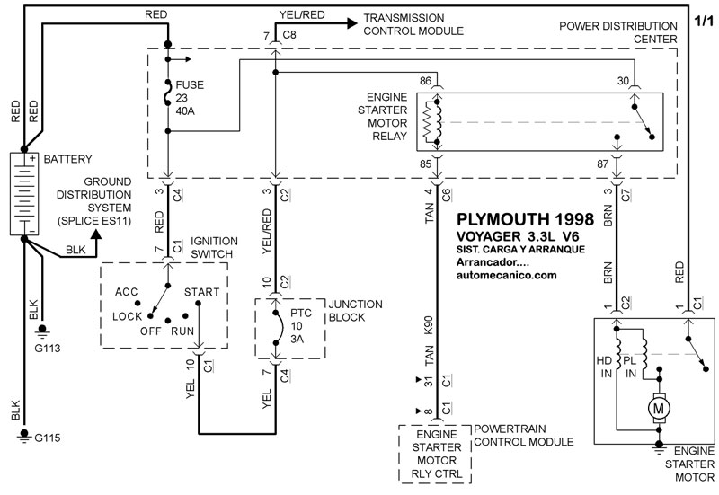 Diagramas PLYMOUTH : Carga y Arranque | Charging and Starting System: - Esquemas - Graphics 1998 - |