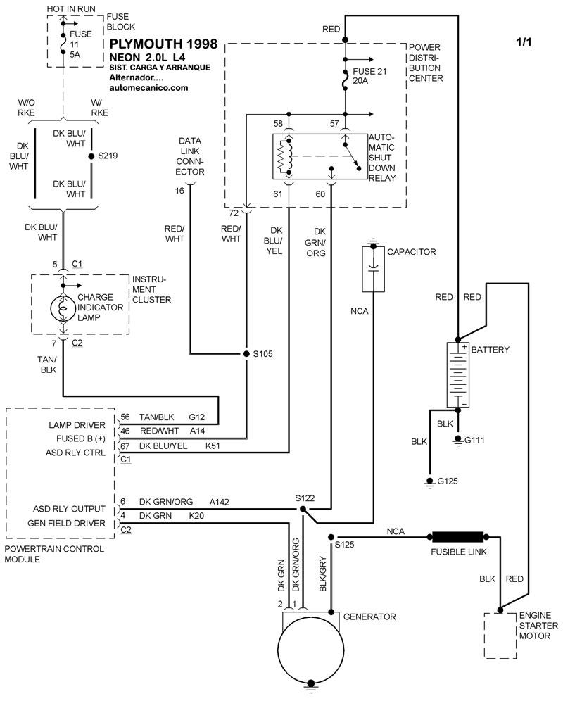 | 1998 | NEON - 2.0L 4 CIL | SIST. DE CARGA | SIST. DE ARRANQUE |